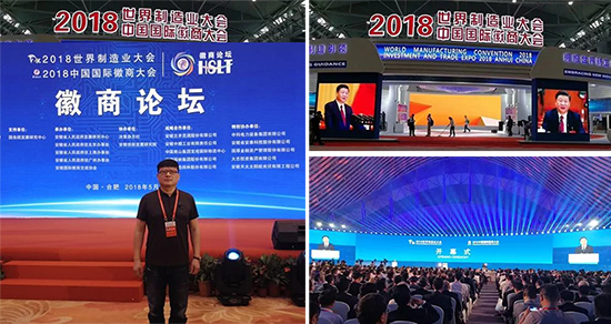 2018年5月25~27日,由安徽省政府、全球中小企业联盟、联合国工业发展组织等主办的2018世界制造业大会和2018中国国际徽商大会在安徽合肥举办。安徽省委书记、省人大常委会主任李锦斌致欢迎辞,安徽省人民政府省长李国英主持大会。公司董事长刘桂应邀参加本次大会。