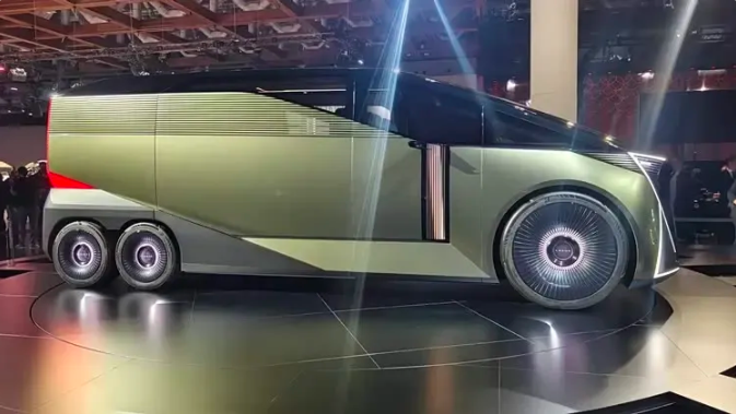 这款车采用了独特的六轮设计,后侧四个车轮比前侧两个尺寸更小,这种差异化设计不仅让整车看起来极具未来感,还为后排座椅腾出了更多空间。