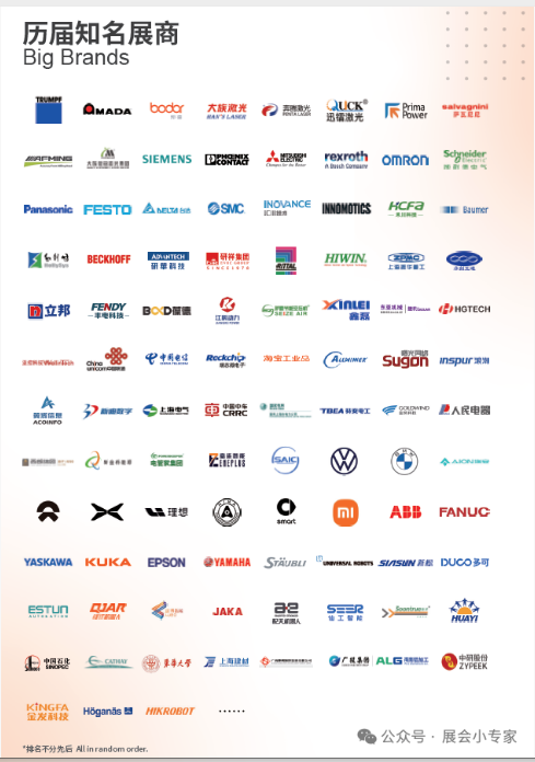 机器人展2012年设立机器人展区,2013年首次独立设主题展为工业机器人展,2015年更名为机器人展。机器人展每年一届,已经成为行业发展风向标,被认为是世界机器人领域具魅力的专业展会之一。展品大类:工业机器人整机、系统集成应用、核心部件、服务机器人、特种机器人。历届知名展商:ABB、FANUC、KUKA、安川电机、川崎、史陶比尔、那智不二越、Rethink Robotics,现代重工、松下、欧地希、柯马、优傲机器人、新松、广州数控、埃斯顿、埃夫特、新时达、博众、赛腾、华昌达、大疆、中信重工、配天、亚威徕斯、李群自动化、固顶、沃迪、高威科、雄克、速德、三菱电机、雅马哈、爱普生、电装、东芝机械、车乐美、东部机器人、艾卫艾、罗普伺达、纳博特斯克、拉法特、哈默纳科、电产新宝、昂华、华太、福赛特、钱江机器人、达意隆、东佑达、众为兴、上海机器人产业园、众拓等。
