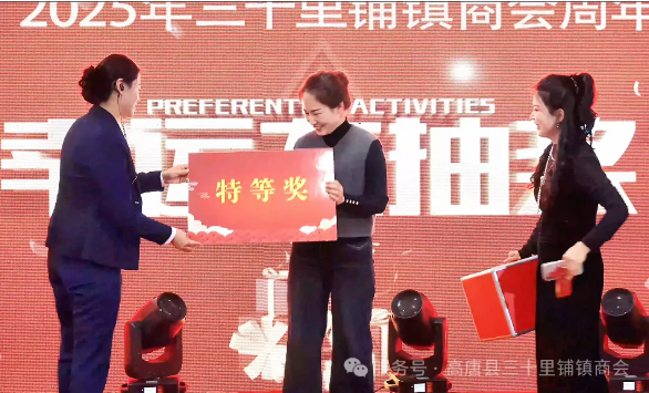 为了充分发挥先进代表引领示范作用,表彰先进,弘扬正气,树立榜样,商会评选出一批优秀的先进个人。与会领导分别为新入会会员、年度新锐奖、年度贡献奖、年度木兰奖、年度组织奖及年度返乡创业奖的获奖者颁发了荣誉牌匾。这些奖项不仅是对获奖者过去一年辛勤付出的肯定,更是对全镇企业家奋发有为、锐意进取精神的集中展示。随后新会员代表山东喜福乐生物科技有限公司总经理王乐、鑫科星精密公司总经理生亚林作为新会员代表发言,期待在商会这个大家庭里,真诚交流,主动探索业务协作的新路径。 2025年度新锐奖获得者: 高唐县兴成棉业有限公司 田宝兵 金禧宴餐饮有限公司 张秀建 山东泉图纸业有限公司 白允庆 高唐县馨妈健康管理有限公司 庄焕鹏 高唐县瑞源饲料有限公司 张洪玉 山东鸿瑞源农牧发展有限公司 李士鱼等; 2025年度贡献奖获得者: 山东汇新汽车轴承有限公司 姜洪康 高唐县坤泰工贸有限公司 刘永鹏 高唐县德慧纺织有限公司 宋明亮 高唐县浩佳汽车配件有限公司 田之岭 清平翱翔木业科技有限公司 宋庆斌 山东昌泰橡塑助剂有限公司 曲中禄等 2025年度木兰奖获得者: 高唐印象三十里电子商务有限公司 杜秀红 高唐县正通达仪表制造有限公司 郭金芝 高唐县独秀锦鲤养殖有限公司 郭蒙蒙 高唐县秀红名饮 袁秀红 高唐县明鹰工贸有限公司 潘小燕 2025年度组织奖获得者: 高唐县坤源汽车配件有限公司 张金伟 山东吉祥渔业有限公司 马传升 高唐县茂源新型材料有限公司 于兵 高唐县富明新型材料有限公司 囤荣明等 2025年度返乡创业奖获得者: 北京众鑫物流有限公司 辛福海 高唐县银翼塑料有限公司 张立伟 山东鸿骏源服饰有限公司 郭保题 高唐县曲氏蜂业有限公司 曲尚忠 高唐县立德纺织有限公司 王名康 聊城奔图信息科技有限公司 金兴凯 高唐京海供应链有限公司 金兴超等 对于以上获奖个人,大家纷纷表示表示祝贺!同时希望获奖的企业家,珍惜荣誉,继续发挥优秀模范带头作用! 共话未来 共进晚宴 活动最后,全体与会领导、嘉宾及会员进行了合影留念,共同记录下这一美好时刻。晚宴在欢快的氛围中开始,现场还穿插了激动人心的抽奖环节,将现场气氛一次次推向高潮。 商会三周年庆典的成功举办,不仅增强了商会的凝聚力和向心力,也为高唐县域经济发展注入了强劲动力。商会将继续秉承“服务会员、凝聚乡情、助力发展”的宗旨,团结带领广大会员企业,为我县经济社会高质量发展作出新的更大贡献!