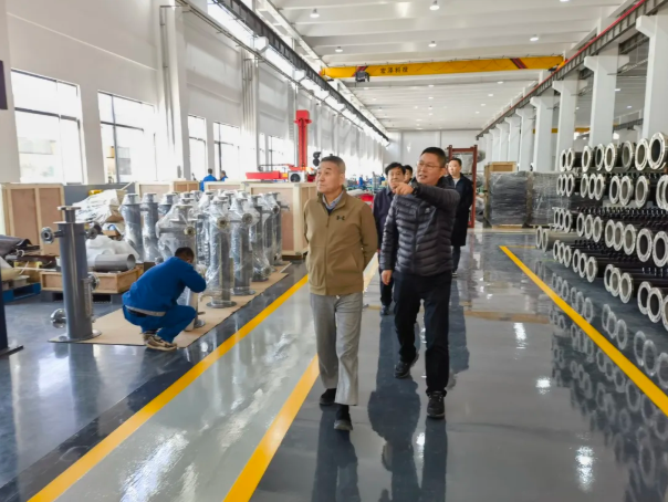 座谈会后,在刘跃生董事长的陪同下,马建国会长一行参观了宏泽科技占地80多亩的高标准新厂房。