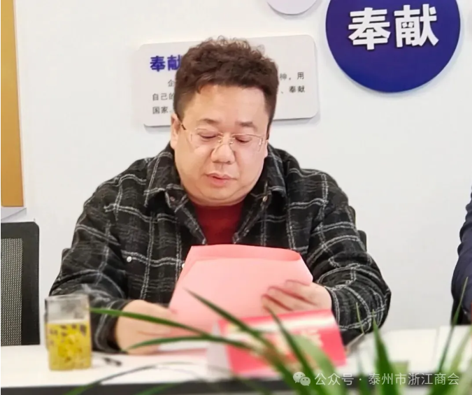 会议重点听取了浙江商会党支部书记梁俊关于1月17日换届大会的筹备要求与工作部署。梁俊书记对大会的议程安排、会务标准与现场纪律进行了周密规划和详细说明,要求必须高标准、严要求地落实每一个环节,确保换届大会圆满成功,彰显泰州浙商的集体形象。
