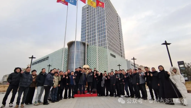 会后,全体理事移步至商会一楼广场,共同为户外“苏超”冠军复刻奖杯落成揭幕并合影留念。这座象征拼搏与荣誉的奖杯,不仅展现了浙商积极参与泰州体育事业的精神风貌,也为城市体育文化景观增添了一道亮丽风景。