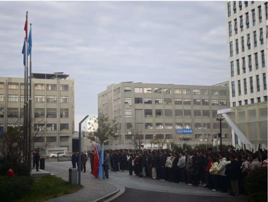 上午8时15分,升旗仪式正式开始。在雄壮的《义勇军进行曲》中,鲜艳的五星红旗冉冉升起,全体人员肃穆而立,向国旗敬礼,表达对祖国的深切祝福与对新年的美好期许。