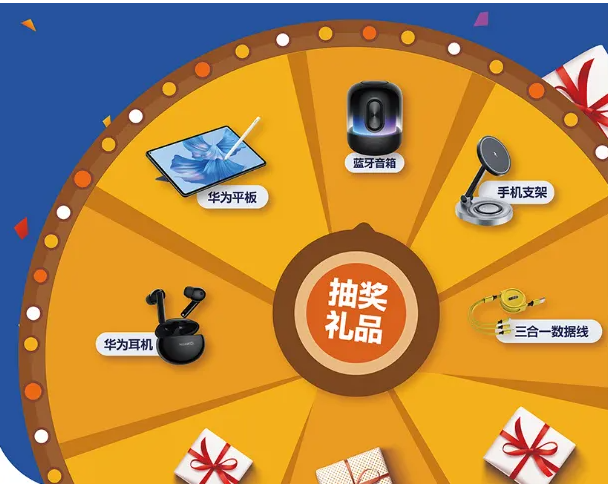 重磅奖品包括:华为平板电脑、华为无线耳机、高品质蓝牙音箱、手机支架等。