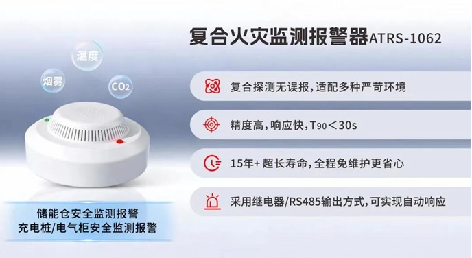 复合探测:四方光电展出新品复合火灾监测报警器ATRS-1062,融合NDIR、光散射及NTC补偿技术,可对烟雾浓度、CO₂浓度、温度实现高精度复合探测,有效过滤环境干扰,消除了单参数误报的痛点,大幅提升系统的响应速率。