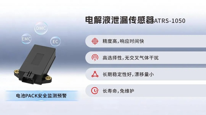 极早期探测:电解液泄漏传感器ATRS-1050可精准捕捉锂电池电解液微量蒸汽泄漏,助力热失控极早期预警。采用NDIR红外检测技术,抗干扰能力强,可实时准确监测DMC、EMC等特征气体浓度,是电化学储能及动力电池极早期安全监测的优选方案。展会期间,产品凭借硬核实力脱颖而出,获得多家头部企业高度认可与深度对接意向。