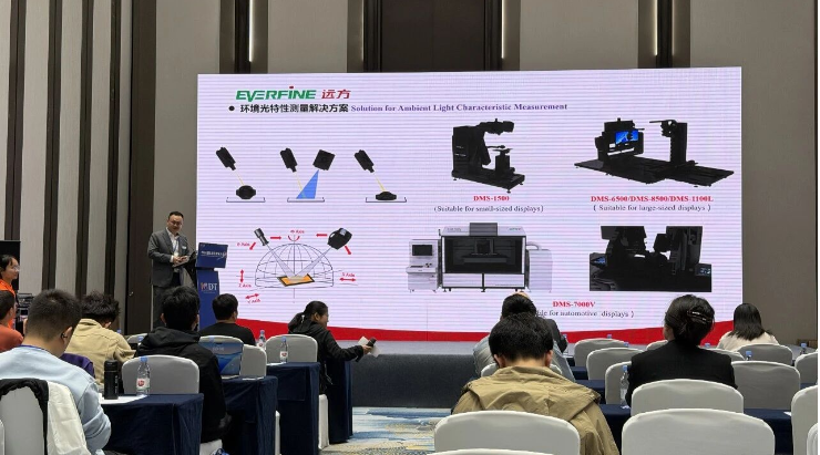 展会期间,远方光电科学研究院还受邀出席并在显示测量分论坛做口头报告,主题:《Characterization and Measurement Methods for Color Gamut of Displays Under Ambient Light》。分享了远方在显示设备复杂环境下的色彩质量测量领域的解决方案与研究成果,并与业内专家深入交流,共同探讨显示测量技术在新兴应用场景下的发展趋势。