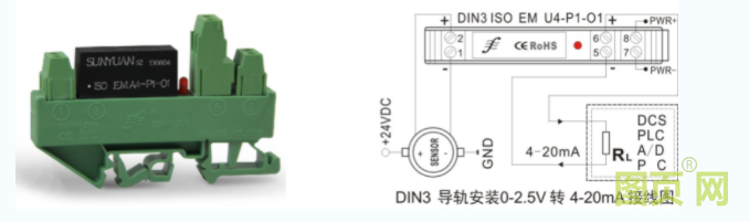 概述:DIN3 SY U-P-O / SY A-P-O 系列小体积、低成本、高精度、标准DIN35导轨安装的 SY U-P-O 系列直流电压信号与 SY A-P-O 系列直流电流信号两隔离(工作电源与信号通道地线隔离)放大器,采用导轨安装低成本小体积设计方案,主要用来解决传感器与仪器仪表、PLC、DCS 之间:0.4-2V/0-5V/1-5V/0-10V/0-20mA/4-20mA 等非标准模拟量与标准模拟信号的转换问题。产品具有高精度和高线性度特点,工作电源与信号通道间 3000VDC 隔离电压,可抑制供电系统中浪涌和共模谐波干扰。这款两隔离放大器使用方便、免零点和增益调节,无需外接调节电位器等元件,适用于模拟电压与电流信号间的转换放大且输入与输出无需隔离的场合。与顺源其它 ISO系列隔离放大器产品相比,具有体积小、成本低、频响高及更好的精度和线性度。