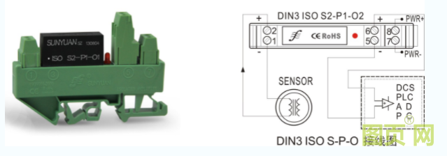 概述:DIN3 ISO S-P-O 系列小体积、低成本、高精度、标准DIN35导轨安装的转速脉冲信号隔离变送器,是一种将转速传感器、正弦波、锯齿波等脉冲信号隔离转换成与输入信号频率完全一致的方波信号的隔离变送器。
