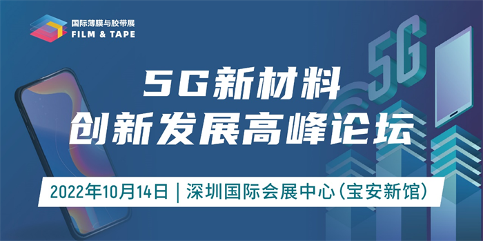 随着5G商用的规模化,5G材料的创新与应用成为产业链发展的重要一环,为提供关键5G材料创新应用与解决方案,深圳国际薄膜与胶带展将在展会同期举办“2022·5G新材料创新发展高峰论坛”,诚邀汽车整车厂、手机品牌商、消费电子厂商及5G市场咨询公司,与大家共同探讨5G材料的发展之路。