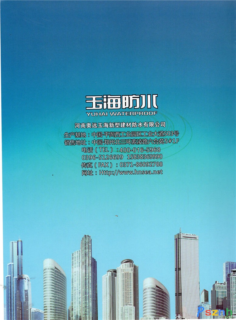 河南奥远玉海新型建材防水有限公司成立于1996年,公司总部位于河南省的省会——郑州,厂区位于防水之乡平舆,是集生产、科研、销售、施工于一体的防水防腐保温专业企业,施工遍布全国各地,实践经验丰富,技术力量雄厚,并先后通过国际质量、环境和健康体系认证,玉海防水不断实行科学化、规范化、标准化的管理体系和优质的服务理念,全面贯彻实施、认真做好每一项优质优良防水防腐保温精品工程。公司秉承“怀德如玉,海纳百川”的企业理念,坚持“业基于专,商基于信”的宗旨。全力以赴为客户奉献技术领先、质量过硬的建材防水产品和至诚至信的服务。