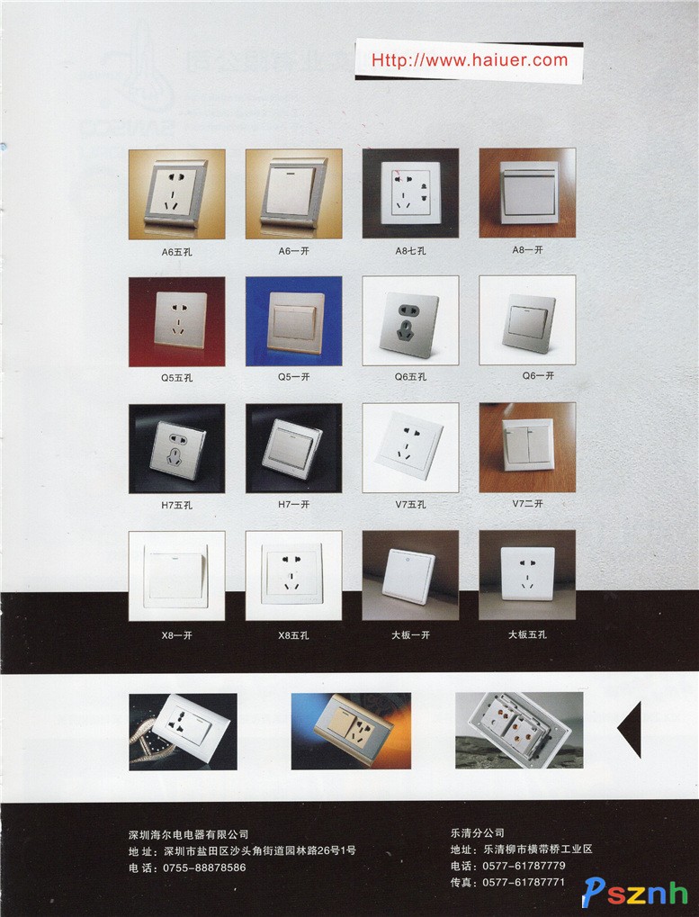 深圳海尔电电器有限公司 建筑电器附件 墙壁开关 插座产品 带动断路器 配电箱