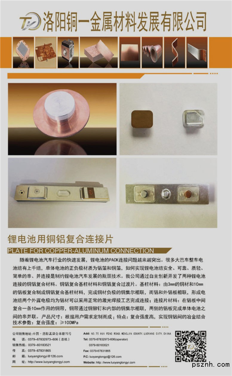 公司主要开发生产铜铝、铜铅、钢(不锈钢)铝、钛铝、铝铝复合系列产品,宽度600~1000mm,厚度0.05~20mm的板、带、箔、排多种型号规格,年产量2万余吨。公司产品复合强度高,板型好,导电、导热性良好,主要应用于电气、新能源、电子信息、通讯、节能照明、建筑等行业,远销全国20余个省市自治区,并部分出口至欧盟、韩国、印度、台湾等国家和地区,得到用户的信赖与一致好评,目前公司正在开发钛铝、钛铝不锈钢复合产品,主要用在高端餐具、装饰等行业。