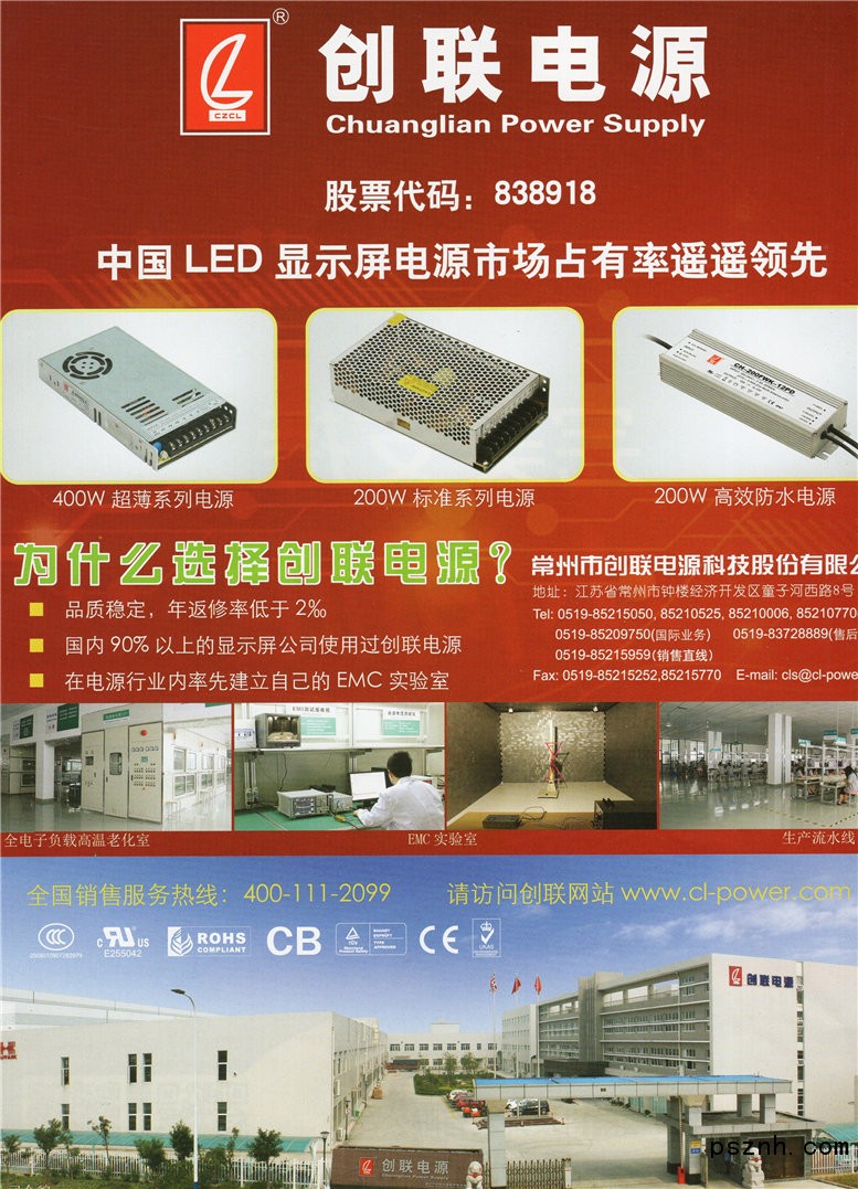 创联电源在LED显示屏特别是全彩显示屏行业应用广泛、市场声誉日隆,得到广大客户的认可,是同类电源行业的领头羊;创联电源的产品在大型活动和重要场馆中得到广泛应用,是目前国内LED显示屏电源中性价比极高、值得客户选择的电源供应商。