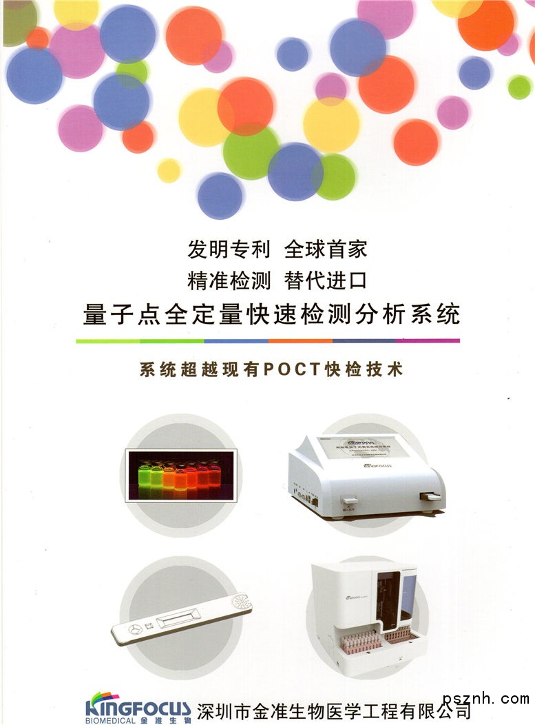 深圳市金准生物医学工程有限公司是一家致力于体外诊断(IVD)试剂及仪器研发、生产、销售和服务的高新技术企业。公司拥有全球首创的量子点免疫层析平台、高通量量子点荧光玻片平台、量子点蛋白芯片平台和快速肿瘤DNA检测平台。产品类别涵盖传染病、心血管疾病、肾损伤、糖尿病、自身免疫疾病、癌症等。
