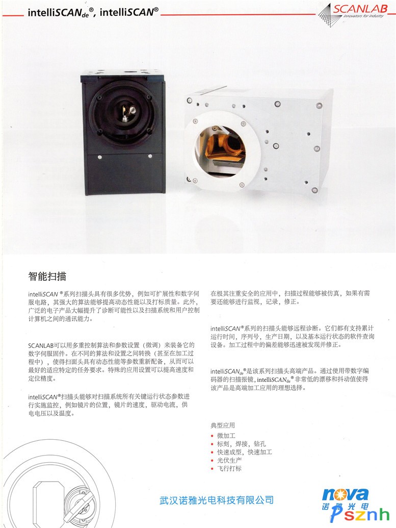 武汉诺雅光电科技有限公司是一家光电高新技术企业,公司位于中国光电产业热土------武汉·中国光谷。 诺雅光电拥有一流光电技术及控制板卡研发团队,专业研发销售高水准激光器件及控制系统,诺雅光电致力于为客户提供价格合理性能优良的激光器和激光配件。 我们公司的主要产品有: 振镜系统:德国SCANLAB全系列高速高精度振镜。