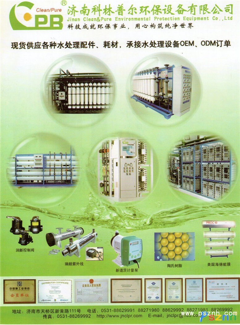 济南科林普尔环保设备有限公司是专业从事各类水处理设备以及进口、国产水处理器材、配件的供应商,集水处理产品研发与设计、设备生产与销售、工程配套与安装、技术咨询与服务一体、以高新技术为主题的新型环保企业。 产品涉及生活饮用水、饮用纯净水、饮用天然矿泉水制取、 电子超纯水、工业纯化水、火力发电厂锅炉补给水等大、中、小型水处理工程,以其先进的技术、精湛的工艺、优良的品质、完善的售后服务体系深受用户的好评和广泛赞誉。 “诚信、品质、卓越、创新、服务”是我们的宗旨,追求客户满意,是我们的责任,我们能为您做的不仅仅是简单的销售产品,我们的每一个技术顾问都会细心聆听您的需求,力求提供给客户最卓有成效的选择,提供最优化的工程技术方案,提供最合理的工艺程序,以帮助客户实现经济效益和社会效益的最大化。 公司主营:反渗透纯净水设备、超纯水EDI设备、生活饮用水设备、浓缩分离设备、离子交换软化设备、矿泉水超滤设备、过滤、软化设备、水处理配套设备、灌装设备、包装设备及杀菌消毒设备等大、中、小型各类设备;另公司代理美国海德能(HYDRANAUTICS)膜元件,代理润新(RUNXIN)多功能控制阀,专业提供水处理设备及水处理配件及耗材。