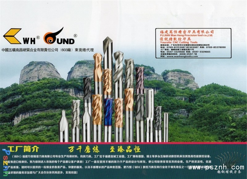 集生产加工、批发经营WH/ UND/ 江西南昌硬质合金系列产品,主要产品有:钨钢铣刀,钨钢制品、钨钢铰刀、硬质合金材料、钨钢钻头、钨钢圆棒、刀柄、车刀杆铣刀杆、数控刀具等。其产品广泛用于加工高硬钢、不锈钢 铝合金,铜材、普通钢、钛合金等材料。