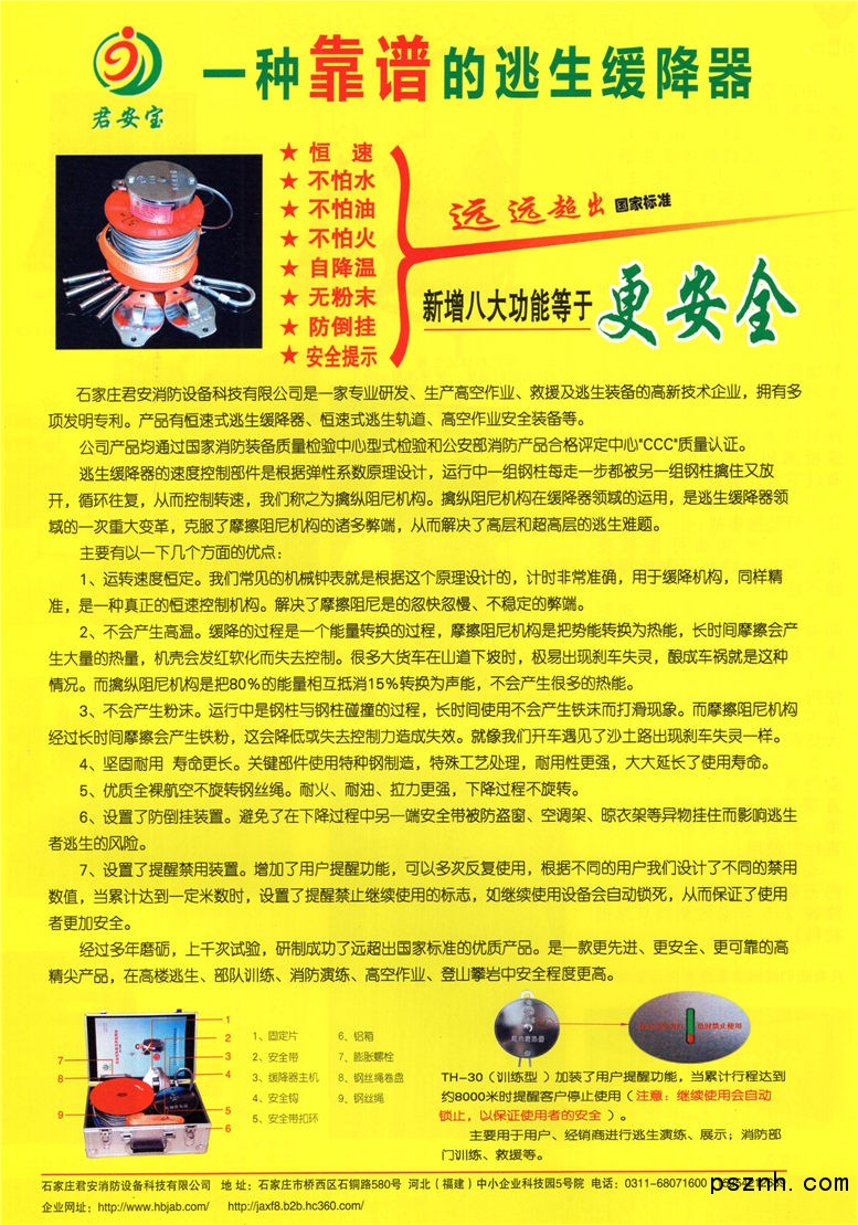 石家庄君安消防设备科技有限公司 恒速式逃生缓降器_恒速式逃生轨道_高空作业安全装备