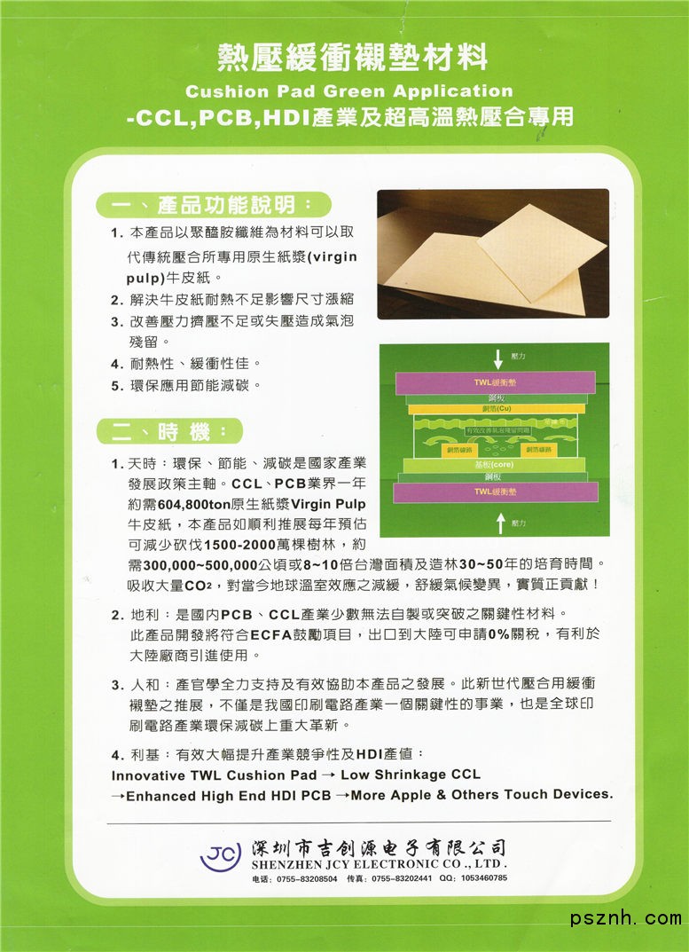 深圳市吉创源电子有限公司主要从事生产制程所需原材料及周边辅料的销售及服务,我们的重点服务对象:PCB工厂、电器电子工厂、PCBA工厂。 设 备:热熔机、销钉机、PP冲孔机、收放板机、倒角机等。 高温产品:PTFE、 压合垫、缓冲垫、PI胶带、铁氟龙胶带、铁氟龙布、硅胶垫、阻胶膜、离型膜、高温胶带,高温保护膜等 生产制程物料:微粘膜、过滤袋,阳极袋,钛蓝袋、隔板胶片、AOI机杯灯、压合铆钉、PEAK放大镜、手术刀片、水性笔、3M胶带。 除尘清洁物料:粘尘纸本、M-3无尘纸、除尘胶垫、手指套、无硫手套。 在激烈而公平、公正、公开的市场当中,吉创源电子选择的经营路线是跨行业、多元化、专业化、以满足客户的要求。我们的不懈努力,相信会令您满意。 作为专业的电子原料及辅料供应商,吉创源电子拥有多年PCB,PCBA物料经验的业务队伍。我们拥有稳定供货网络,根据客户的要求,以提供合理价格,快速的供货。专业的服务及优良的品质保证,是您值得信赖的长期合作者。