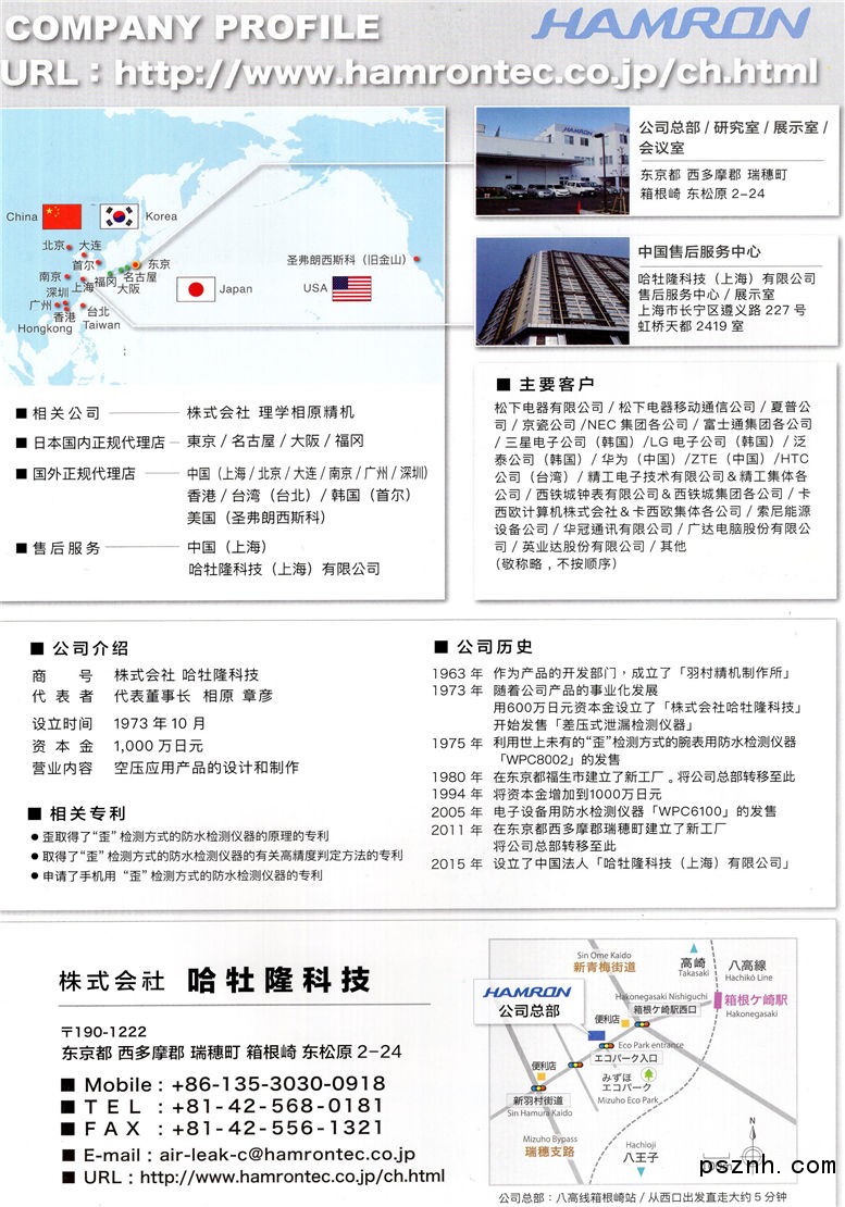 株式会社ハムロン・テック(哈牡隆科技株式会社)自1973年建立以来、坚持致力于“泄漏”检测设备的开发,制造,销售和服务工作。