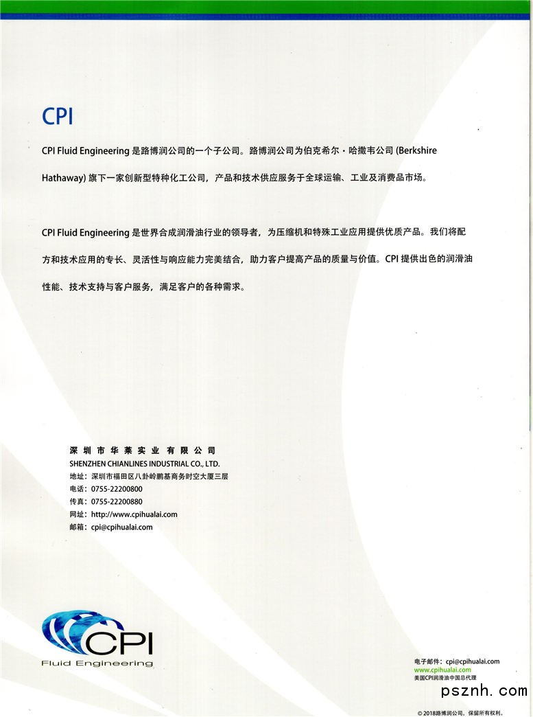 广泛地应用于中国的制冷、化工、油田、电力等行业。产品知名度得到大幅提升,为CPI润滑油在中国市场的推广
