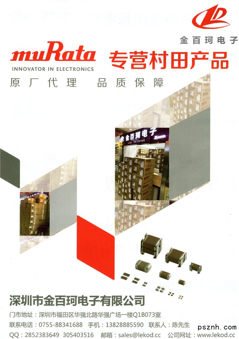 公司代理经销品牌有:村田(muRata),太阳诱电(TAIYO),东电化TDK,AVX京瓷(kyocera) 代理的产品线:电容,电感、磁珠,谐振器,滤波器,等元件;金百珂不断增加产品线的服务配套范围,致力于全方位采购平台。产品规格齐全,货源充足,质量稳定,价格合理。