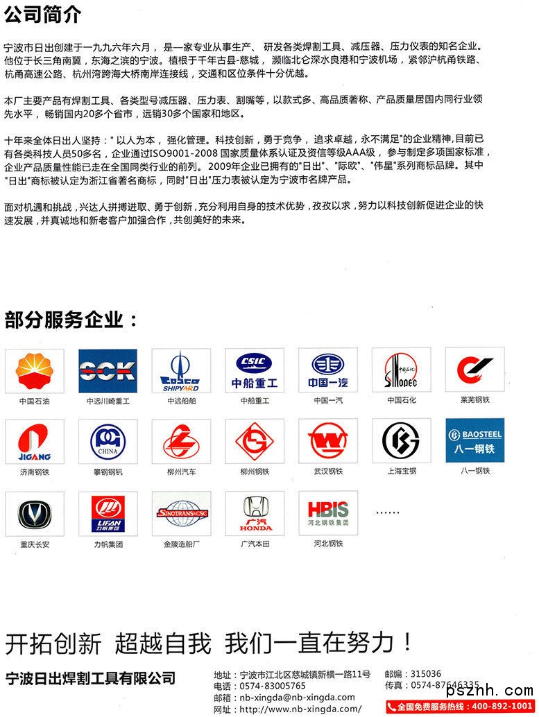 宁波市江北兴达焊割减压仪表厂 焊割工具、减压器、压力表、割嘴