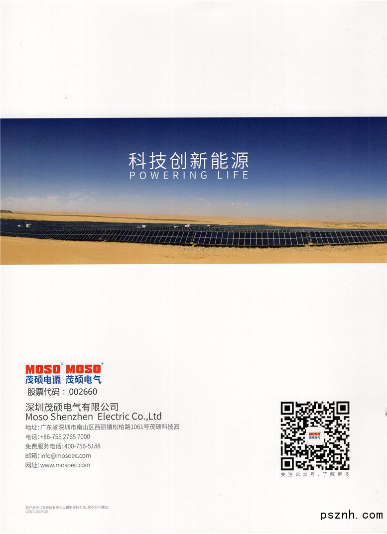 深圳茂硕电气有限公司 茂硕电源科技股份有限公司(简称“茂硕电源”,股票代码:002660)是国家级高新技术企业;是国家十二五规划鼓励发展的节能减碳新能源企业;也是国内有相当影响力的专业电源制造企业。公司2006年成立以来,经过几年的快速发展,得到多家世界500强公司的认可,并与其结成战略合作伙伴关系。 茂硕电源集产品研发、制造、销售及服务于一体,已在美国、日本、韩国、新加坡、欧洲、香港、台湾等国家或地区设有分公司或办事处,能够为国内外客户提供迅捷的专业服务。优秀的人才,先进的技术,科学的管理,以及务实、进取的创业精神使得茂硕电源能够持续处于行业领先地位,是茂硕电源真正的核心竞争力。