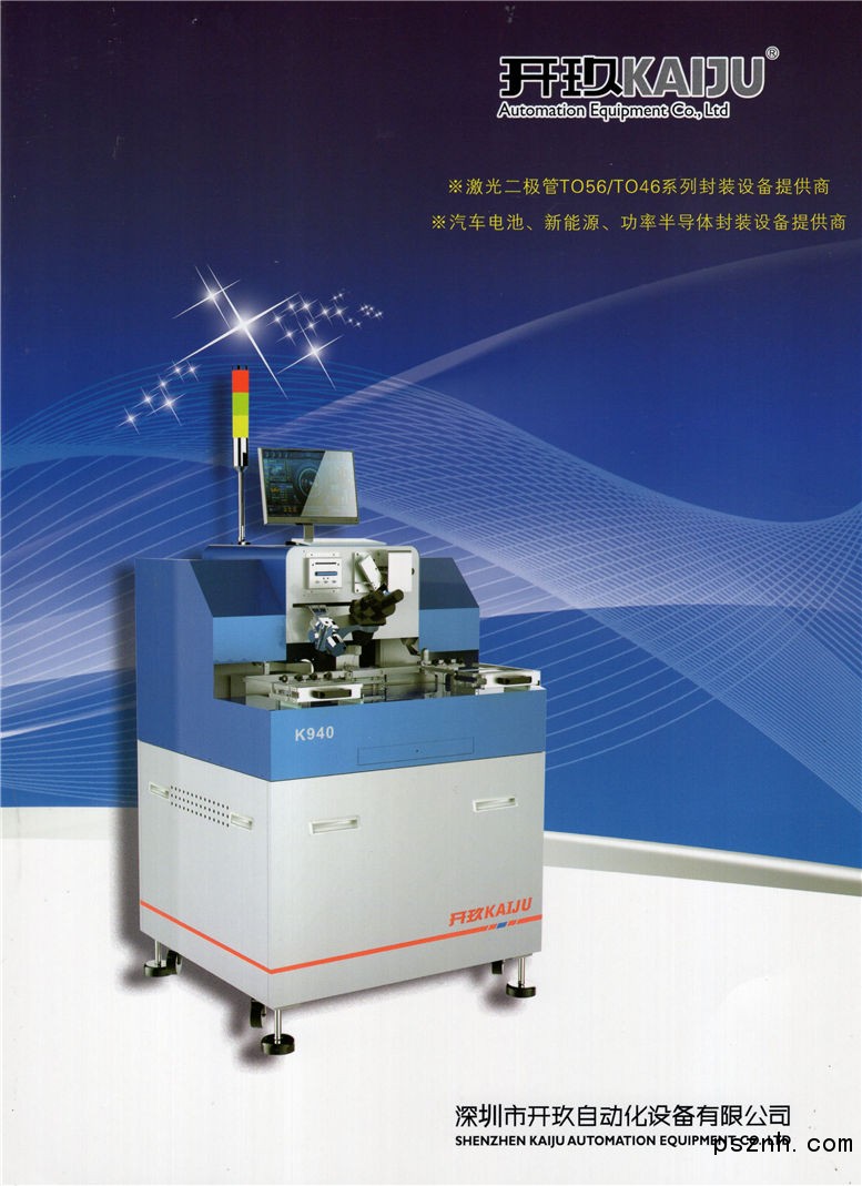 开玖是国内最主要的半导体封装设备供应商,主导产品是全自动超声波引线键合机,在TO56/TO46/TO38激光管元件的封装设备市场上占有70%以上市场份额!