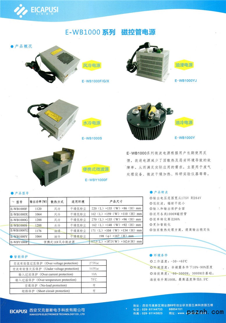 西安艾克普斯电子科技有限公司 微波电源 1KW磁控管电源系列 1.5KW磁控管电源系列