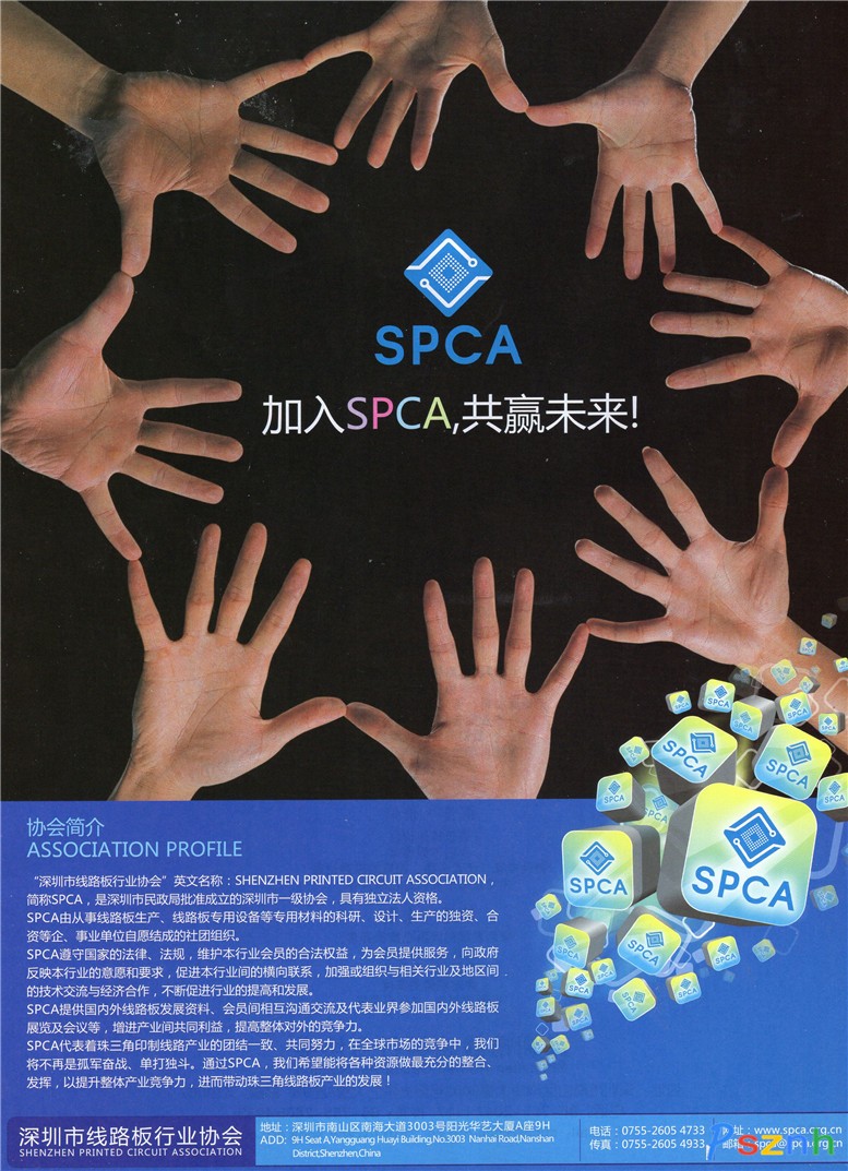 协会的成立代表着珠三角线路板产业的团结一致、共同努力,在全球市场中的竞争中,线路板企业将不再是孤军奋战、单打独斗。通过SPCA,我们希望能将各种资源做最充分的整合、发挥,以提升整体产业竞争力,进而带动珠三角线路板产业迈向一个新纪元!