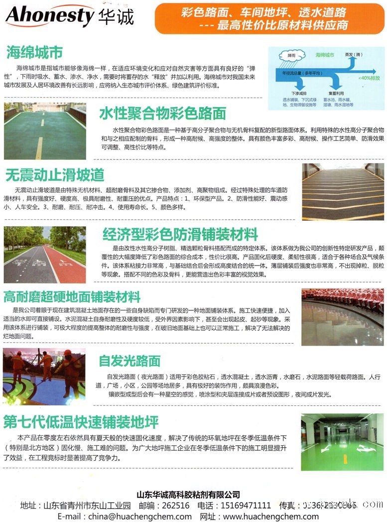 山东华诚高科胶粘剂有限公司 透水混凝土 胶粘石透水路面 冷拌彩色透水沥青 道路保护剂