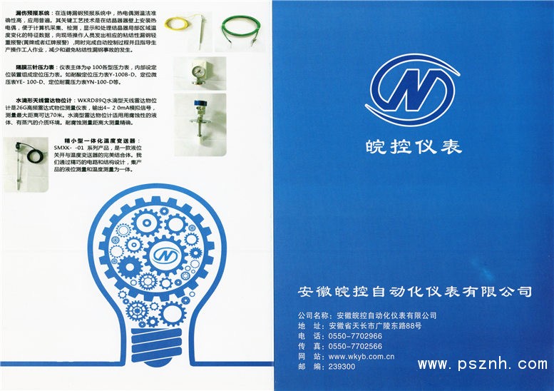 安徽皖控自动化仪表有限公司以自主研发生产仪器仪表和代理国外知名品牌为经营模式,以产品销售和工程承接相结合,主要经营的产品有:水泥、煤化工、化工、电站专用热电偶、热电阻、双金属温度计、电磁流量计、涡街流量计、涡轮流量计、金属管浮子流量计、靶式流量计、标准孔板流量计、V锥流量计、平衡流量计、楔型流量计、超声波流量计、热量计、雷达物位计、射频导纳物位计、超声波液位计、磁性浮子液位计、液位变送器、压力控制器、智能数字显示仪表、远传监测仪、单点闪光报警器、无纸记录仪、流量积算仪、安全栅、隔离器、配电器、温度变送器、差压变送器、压力变送器、远传压力变送器、耐震压力表、隔膜压力表、膜盒压力表、膜片压力表、PLC系统,DCS系统等及电线电缆等。