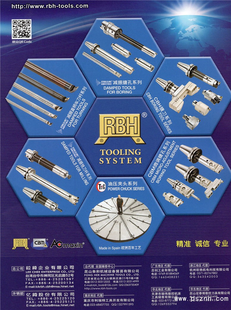昆山夆和机械设备贸易有限公司,成立于2012年,位于中国大陆经济实力最强县级市昆山市。公司为台湾鉝錡RBH精密镗刀,RBH对刀仪,RBH精密虎钳,RBH减震搪刀,CBM精密搪刀,台湾ACMAXIN精密镗刀,ACMAXIN精密虎钳大陆总代理,同年设立技术服务部及产品维修部。我们在所擅长的领域配合客户不同的需求,提供高稳定性,高性价比的切削刀具。