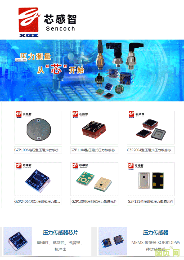 公司自成立以来已成功开发出扩散硅压力敏感芯片、SOI高温压力敏感芯片、压力传感器、压力传感器模块、压力变送器、红外传感器等系列产品,广泛用于医疗电子、汽车电子、家电、净化设备、水泵、空压机、气象、移动设备以及工业自动化等领域。