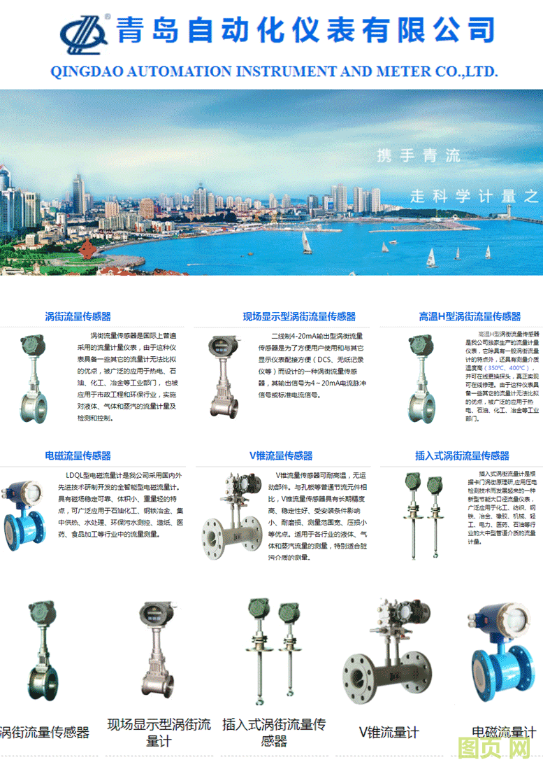 青岛自动化仪表有限公司 涡街流量计 电磁流量计 超声波流量计 V锥流量计