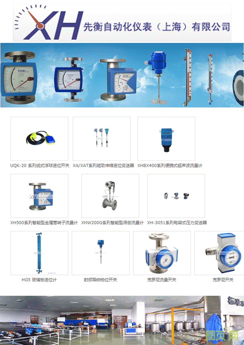 公司主要产品:XH系列金属管转子流量计,UHZ系列侧装式磁翻柱液位计,UHZ系列顶装式磁翻柱液位计,浮筒液位计。