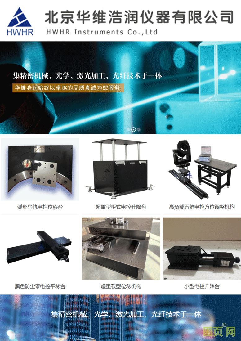 北京华维浩润仪器有限公司是一家集精密机械、光学、激光加工、光纤技术于一体的高科技企业。公司具有一批经验丰富的、长期从事光电产业科研开发的设计人员、高级技师和专业知识丰富的销售人员,技术力量雄厚、工作态度严谨。