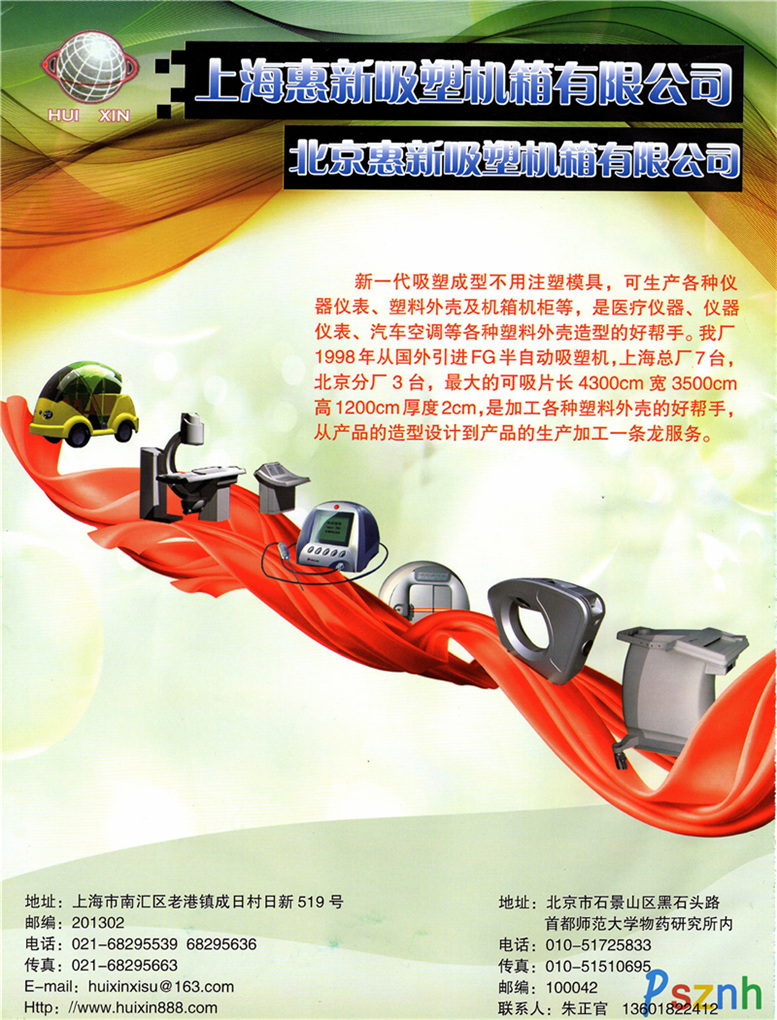 上海惠新吸塑机箱有限公司是由原南汇区校办工业公司下属校办企业,创建于1978年,已有23年生产ABS塑料板材外壳的历史。我公司1998年从国外引进大型热成吸塑机与FG658全自动吸塑设备,机械设备和科技人员,实力雄厚,能生产各种精度和高难度成型外壳。广泛用于医疗设备、仪表的外壳,及广告业、装饰业等。并向广大客户提供优质产品和一流的服务,我公司并与上海慎任工业设计事务所和福田工业设计事务所精心协作,从产品的造型设计到产品的生产加工一条龙服务。愿与广大客户共同发展和长期协作,共创辉煌未来。