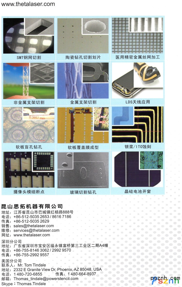 思拓已经研制了应用于集成电路产品的多种高精密激光微加工设备,还将开发其它高新技术领域产品的应用,从而建立一整套高精密激光加工设备系列,这些产品应用包括HDI电路板,太阳能电池,半导体硅片,医疗器械,激光精密微加工,精密金属材料加工,超薄玻璃加工等。