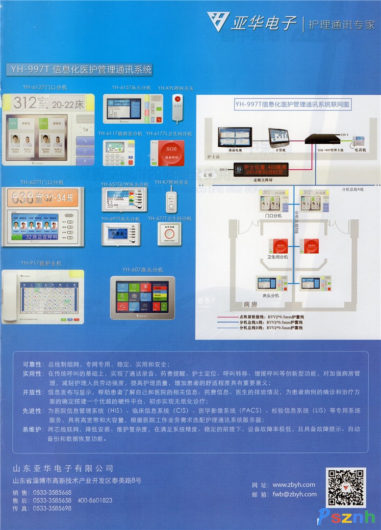 山东亚华电子股份有限公司 智能护理通讯系统 信息化医护管理系统