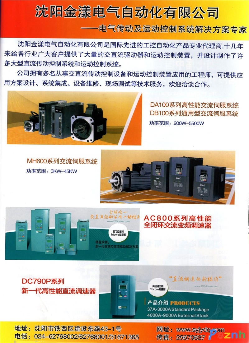 沈阳金漾电气自动化有限公司 是美国ETD750/800/790系列交/直流传动产品的东北地区一级代理,美国派克Parker精密机电/运动/传动控制产品(伺服驱动器和伺服电机、运动控制器/卡、步进电机及驱动器、AC30V/650/690/890变频调速器、512/514/590直流调速器、电动推杆)和Parker气动产品东北地区一级代理。