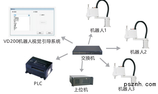 VD200支持与Adept 、ABB、Denso、EPSON、Kuka、UR、Yamaha、华数、柯马、三菱、汇川、启帆等国内外各品牌机器人一键连接。同时还能与西门子、三菱、欧姆龙等PLC进行通讯,并能直接读写PLC的寄存器数据。如您有自己的机器人品牌,我们可以免费开发接口及通讯程序,以支持您的品牌。