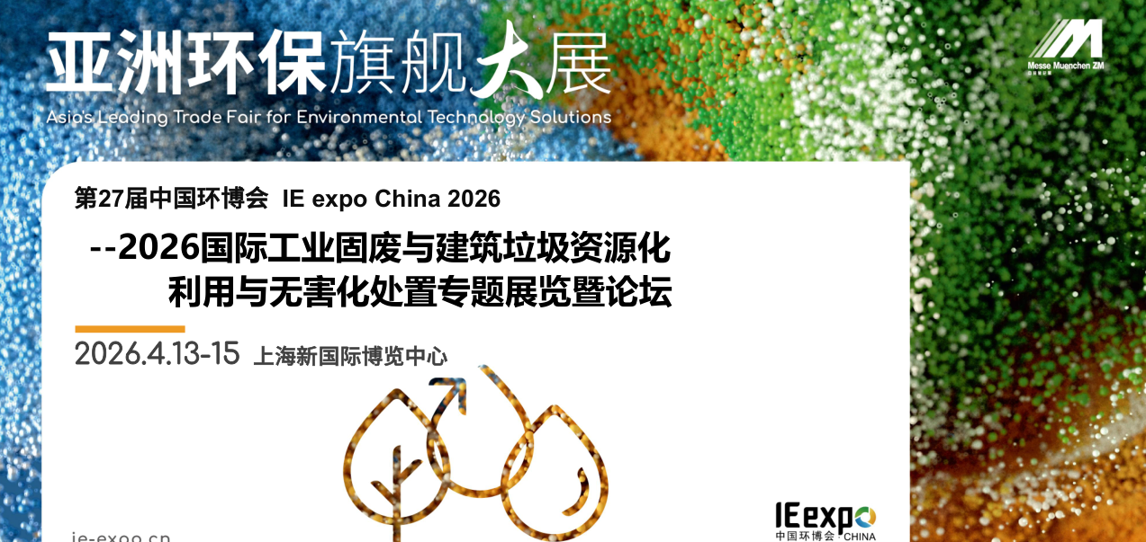 为助力工业固废与建筑垃圾治理产业升级,在中国散装水泥推广发展协会固废综合利用专委会、中国砂石协会建筑固废利用分会等单位指导支持下,“2026上海国际工业固废与建筑垃圾资源化利用专题展览暨论坛”,将与 2026 年 4 月 13-15 日上海新国际博览中心举办的第 27 届中国环博会同期举办,诚邀业界同仁共探产业新路径!