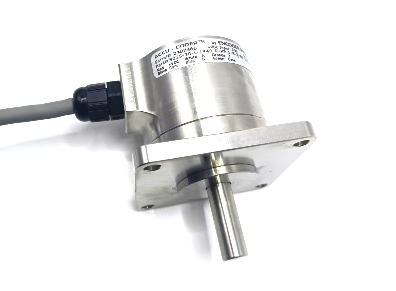 802S 型 Accu-Coder 牌精密编码器,工业标准外壳,直径 2.0 英寸,选用 316 型不锈钢,结构 紧凑、坚固耐用、可靠性强,是一种重载型编码器。此设计特别适合工作于恶劣工业环境。具 有多种可选的法兰和伺服安装模式,使 802S 型编码器应用广泛。其双轴封滚珠轴承承载 80 磅, 较大的轴向和径向承载能力保证了编码器较长的工作寿命。震动级别为 75g @ 11 毫秒,可选择 的工业轴封超过 IP66 标准(NEMA 4 和 13)。最大转轴速度是 8000 转/分。